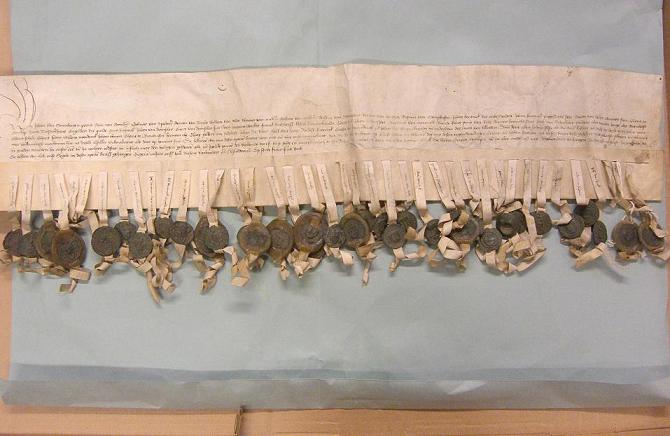 23-10-1406. Fehdebrief an die Stadt Lüttich seitens der Helfer des Grafen Adolph von Cleve und Mark.