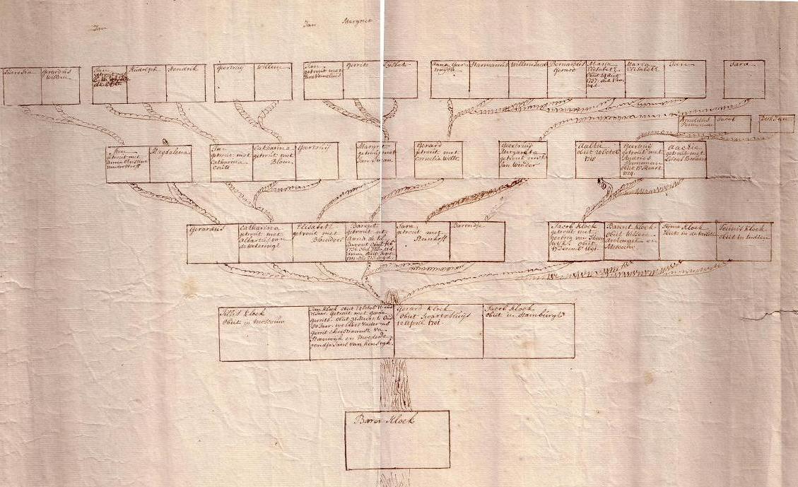 Pentekening genealogie van de Regentenfamilie Kloek uit Alkmaar anno 1742
