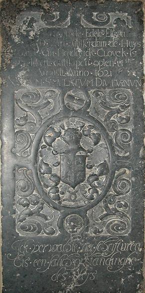 sterfdatum 14 Augusti 1621. Voorts staat op de zerk de volgende tekst.